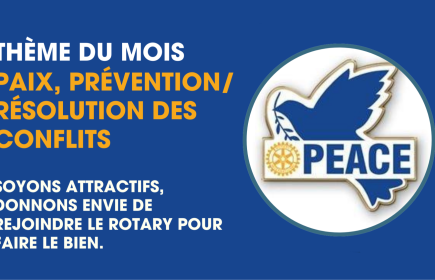 Le mois de février, mois qui célèbre la création du Rotary -le 23- a été choisi comme celui de la paix et de la prévention/résolution des conflits. Est-ce un signe ? La Paix constitue la finalit...